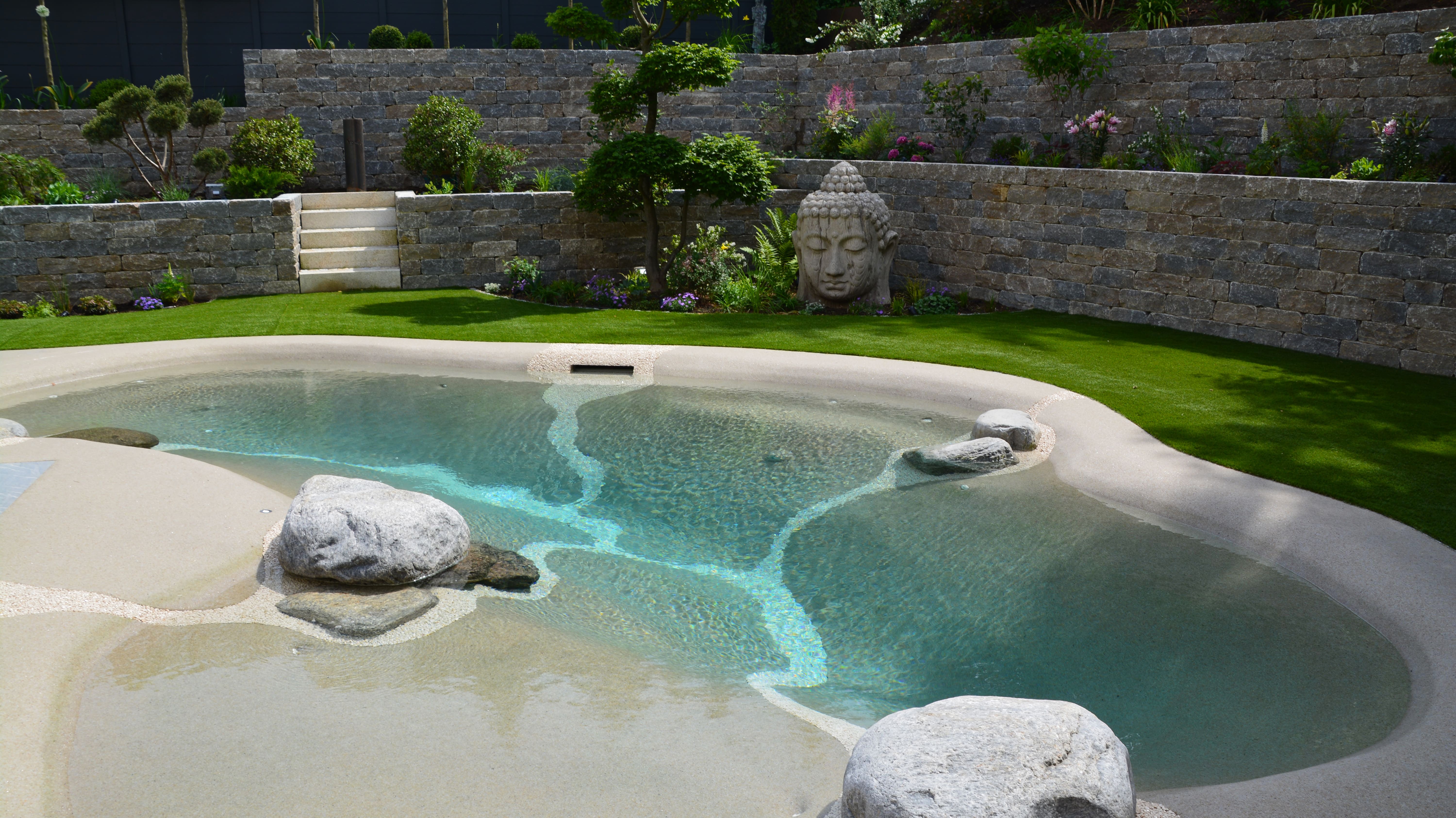 Individuell für Sie gebaut, passt er sich ganz Ihnen und Ihren Garten an. Flach abfallende Strände und verschiedenste Wellness-Elemente, wie Whirpool-Düsen und Geysire versprechen Erholung pur.