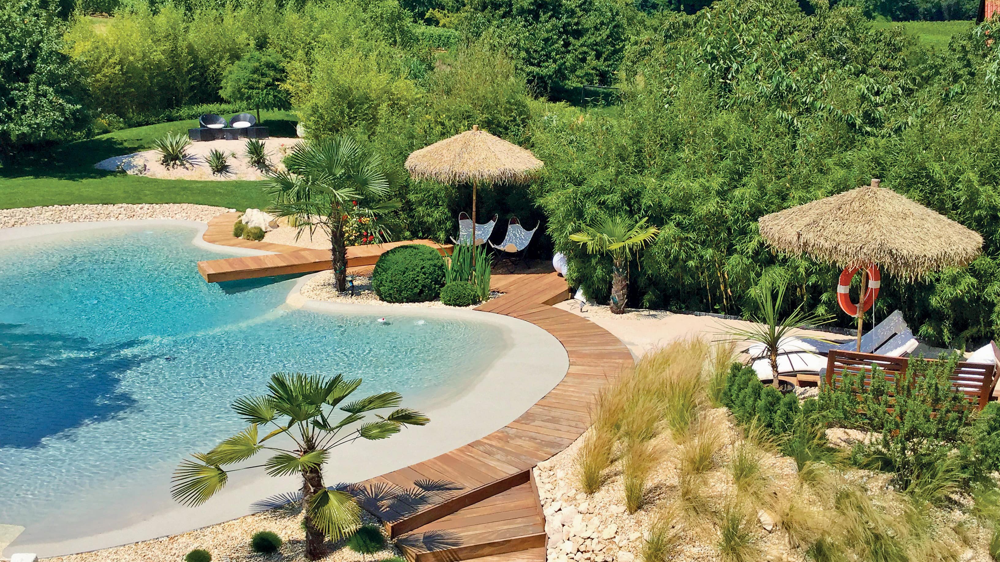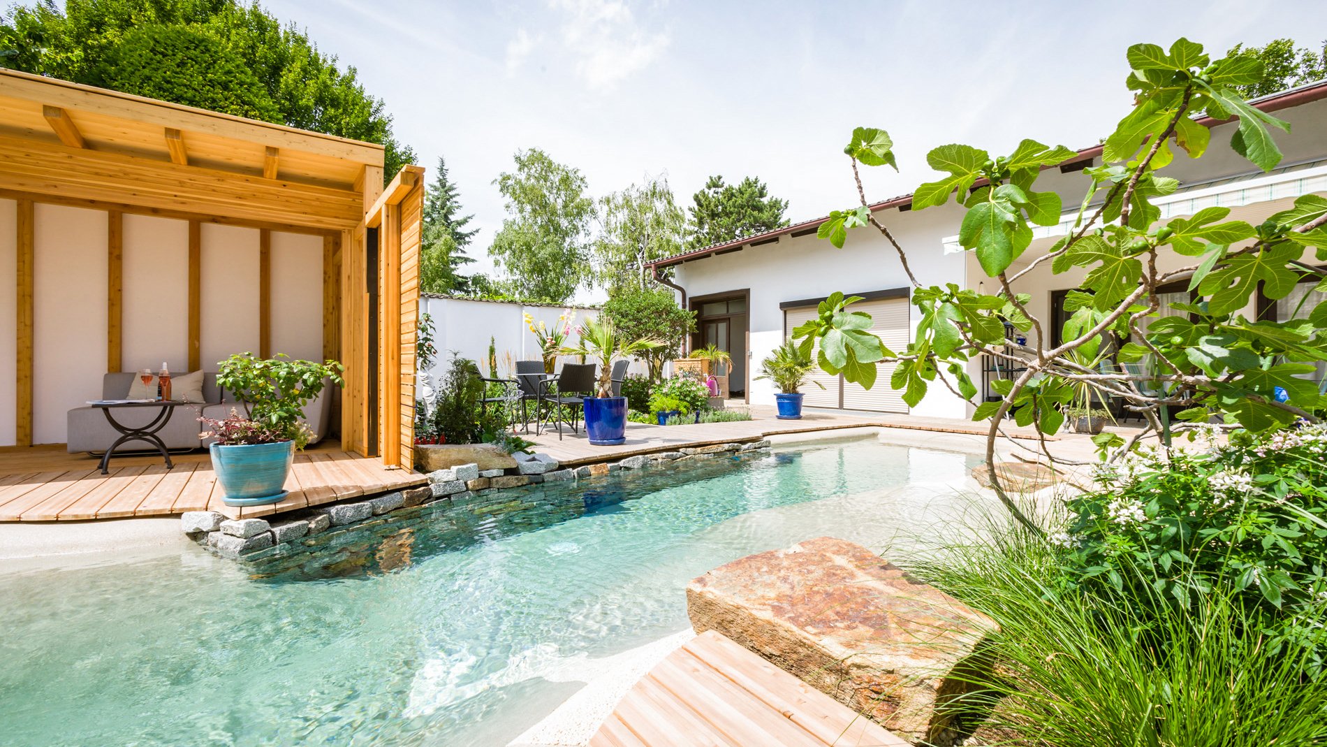 Genießen Sie alle Vorteile der Wasseraufbereitung eines herkömmlichen Pools kombiniert mit dem eleganten Look eines natürlichen Gewässers.
